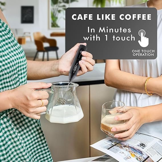 Elevate your coffee experience with the GetSetNova Rechargeable Milk Frother & Coffee Whisker. Designed for true coffee lovers, this electric frother features a whisper-quiet motor and a long-lasting rechargeable battery that delivers up to 30 days of frothing on a single charge. Its dual spring mechanism creates froth up to 5x faster, making it perfect for cappuccinos, lattes, matcha, or hot chocolate. With three adjustable pace modes, you can customize froth consistency from medium to high for a smooth, splash-free experience every time. Stylish, efficient, and built for performance, the Nova Milk Frother is your ultimate brewing companion for café-style drinks at home.